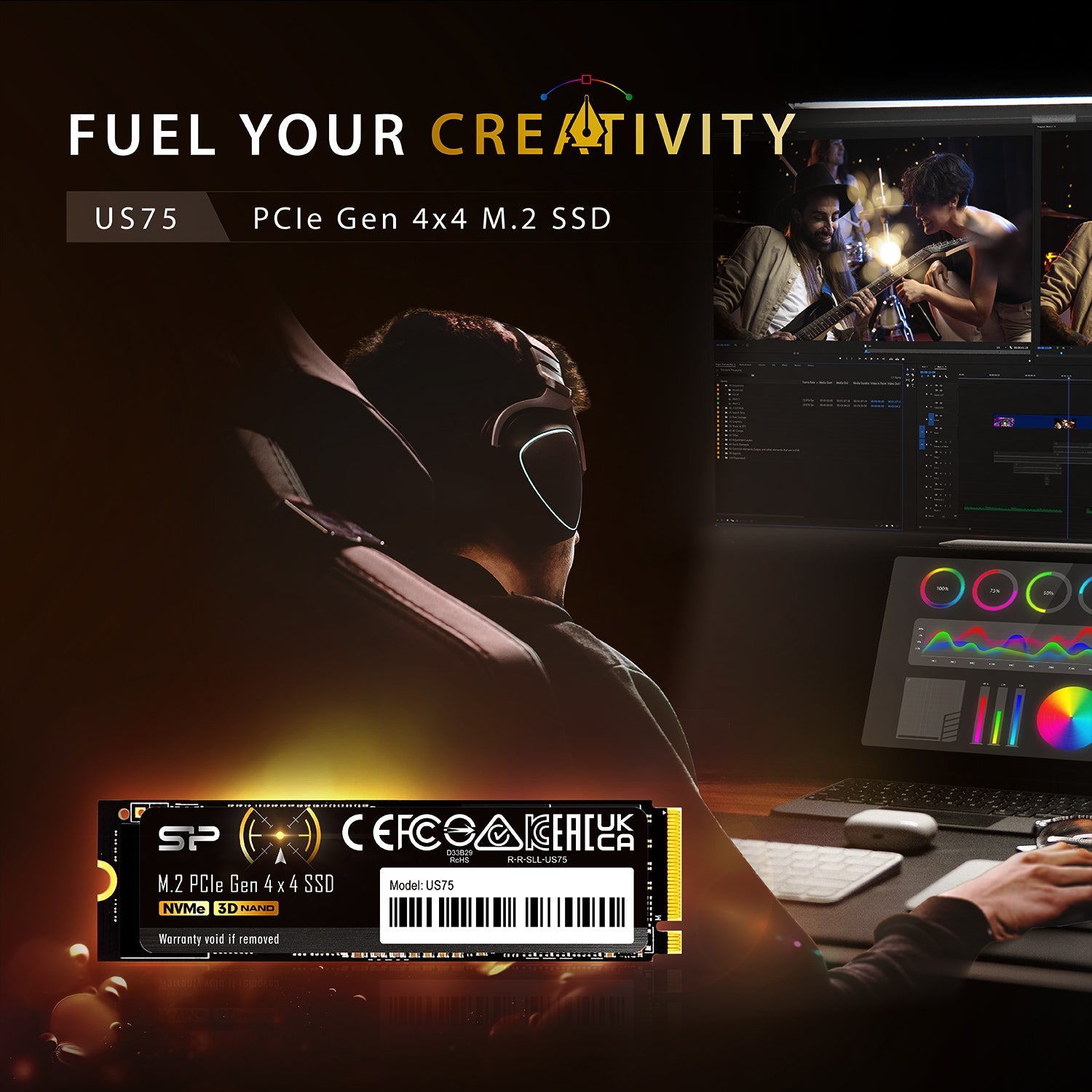 Disque SSD interne Silicon Power US75 NVMe Gen4x4 M.2 2280 2 To-4 To, compatible avec la PS5