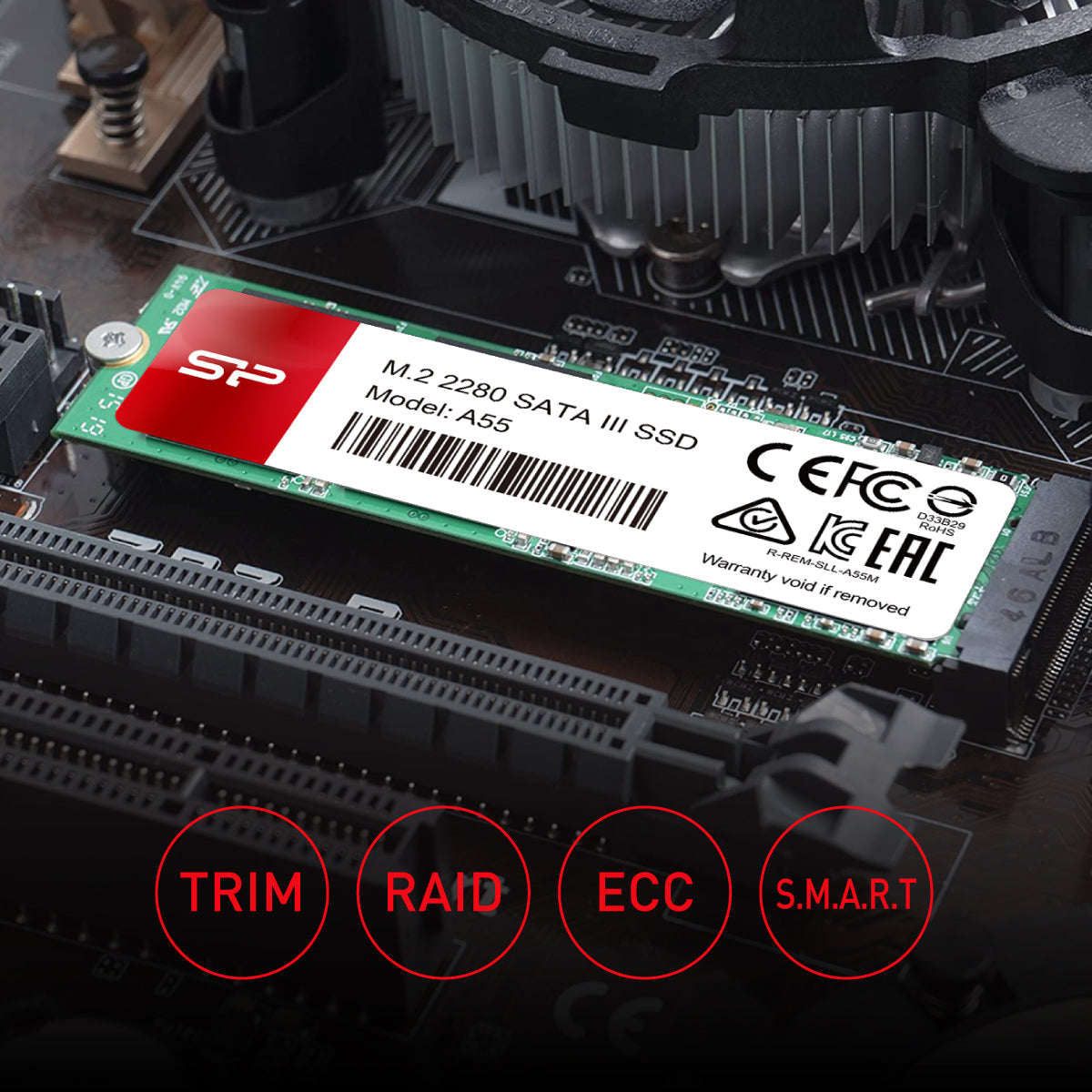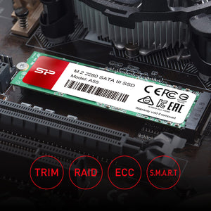 The A55 M.2 2280 supports TRIM, NCQ, and S.M.A.R.T. command. Also, it ensures stability and overall system reliability with the built-in automatic error correction (ECC), average rewriteable storage block technology (Wear Leveling), and fault block management (Bad Block Management).