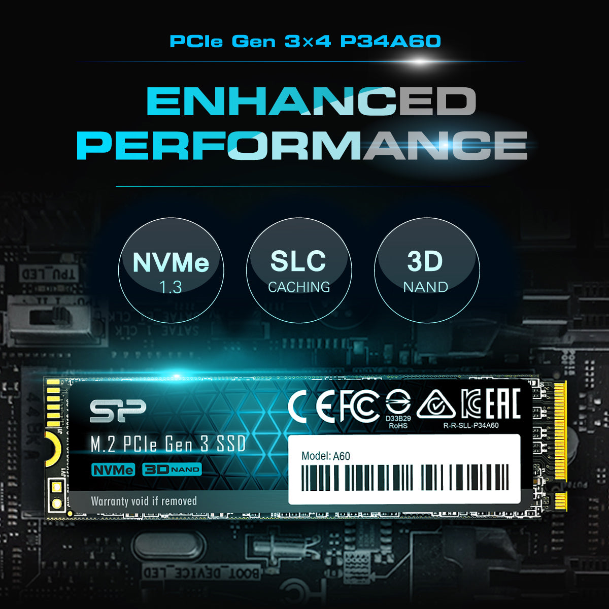 Silicon Power P34A60 256GB-2TB NVMe PCIe Gen3x4 M.2 2280 Internal Solid State Drive