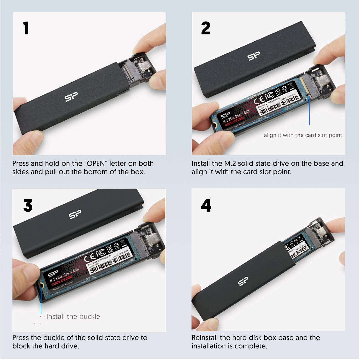 Silicon Power PD60 2230/2242/2260/2280 M.2 M-key PCIe NVMe / SATA SSDs Enclosure
