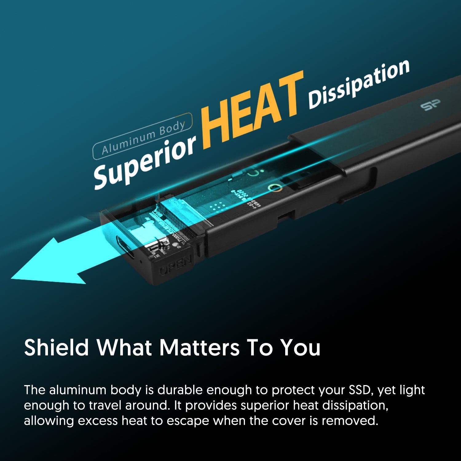 The aluminum body is durable enough to protect your SSD, yet light enough to toss in your bag and hardly notice it, making it the perfect travel companion. It also provides superior heat dissipation, which is further enhanced by its slide design, allowing excess heat to escape when the cover is removed.