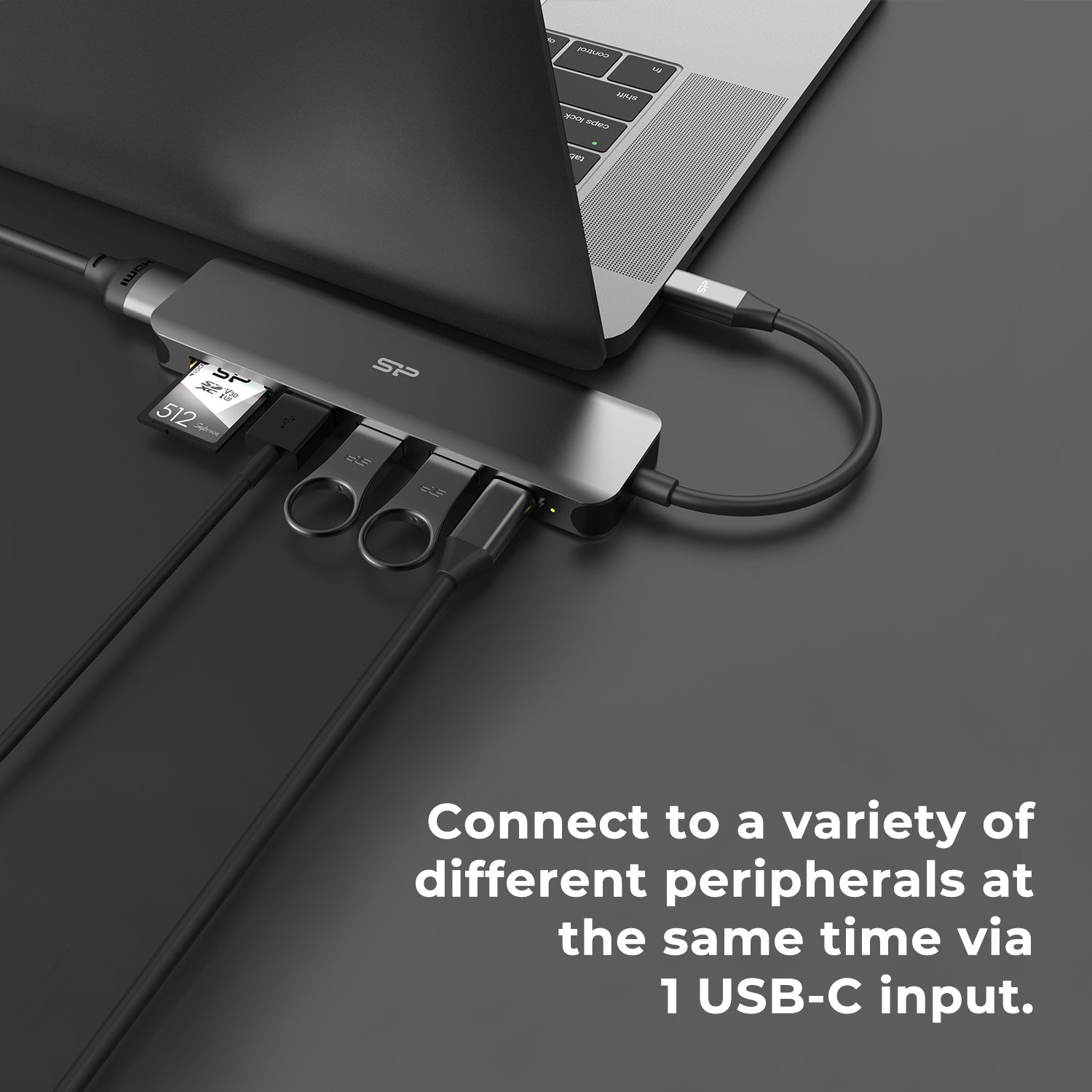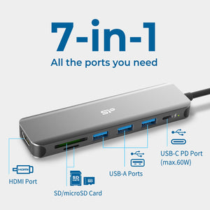 Silicon Power SU20 7-in-1 Docking Station with HDMI, USB Type-A, USB-C PD, SD, and microSD ports