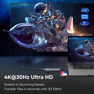 The HDMI port supports resolution up to 4K (3840x2160) @ 30Hz for high-definition quality on multiple displays with no lag time. SD and microSD card readers are compatible with SDHC/SDXC and can work simultaneously for accelerated workflow. 4 USB ports (3 Type-A and 1 USB-C) permit a variety of different peripherals to be connected to your device at the same time.