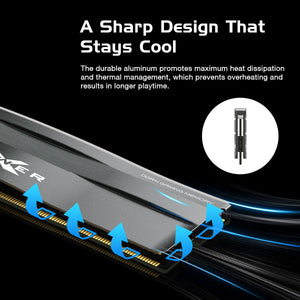 This iron grey colored heat spreader with a textured hairline finish results in a sharp and eye-catching design that is balanced by soft curves. The durable aluminum promotes maximum heat dissipation and thermal management, which prevents overheating and results in longer playtime.